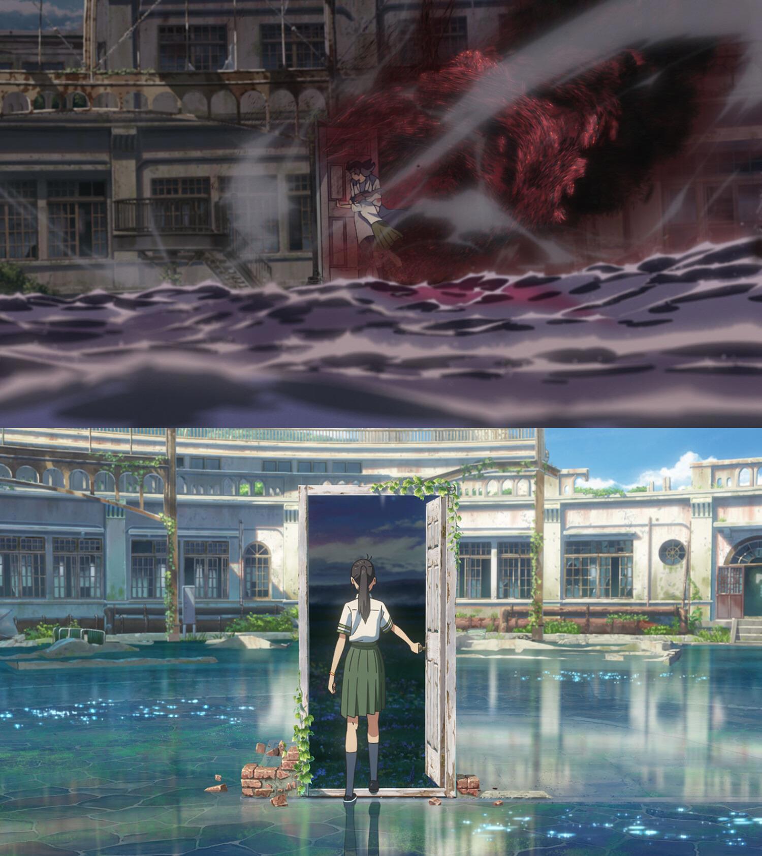 И третья линия - душевная травма Судзумэ, которая мучила ее с детства: девушка не могла смириться с гибелью своей любимой мамы... Путешествие с закрыванием дверей и любовь к Соте, помогает Судзумэ излечить душевную детскую травму и найти новый смысл жизни.