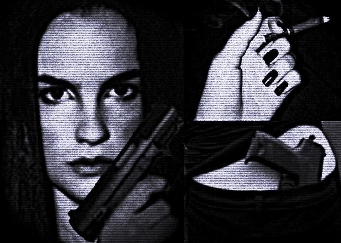 Докурив сигарету, Каролина бросила окурок на пол, что здесь было запрещено и вынула из-за пояса чёрных джинсов пистолет, почувствовав при этом, как нагретый от соседства с телом затвор скользнул по коже на пояснице. Зловеще усмехнувшись, она нацелилась в потолок и два раза подряд выстрелила. Оба грохота попали точно в такт ритмично бьющей по ушам музыки, но при этом заглушили её и заставили толпу, резко обернувшись, обратить на себя внимание. Толпа увидев, как зеркальный потолок со звоном осыпался красиво переливающимся разными цветами водопадом осколков, сразу же заголосила и бросилась, не разбирая дороги в разные стороны. При этом музыка и разноцветные вспышки света не прекращались.