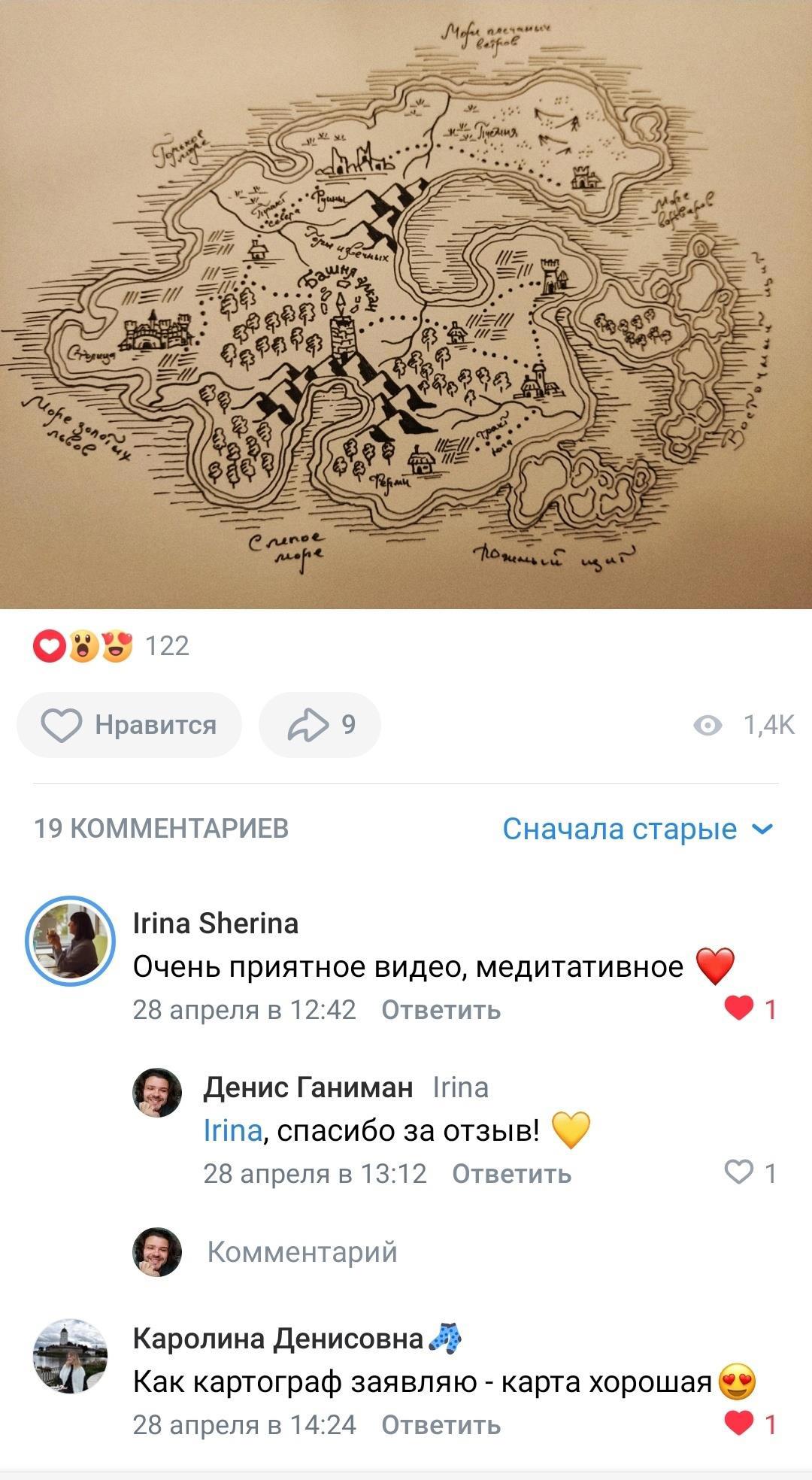 Автор: Ганиман ДенисНедавно получил безумно приятный отзыв от профессионального картографа. Человек посмотрел мой выпуск про рисование фэнтези-карт и написал следующее: "Как картограф заявляю – карта хорошая". Для меня это прямо показатель. Приятно и ценно получать такую вот обратную связь на видео, которому я посвятил целых три дня. Кстати, посмотреть его можно на канале "Добрый Ментор".
