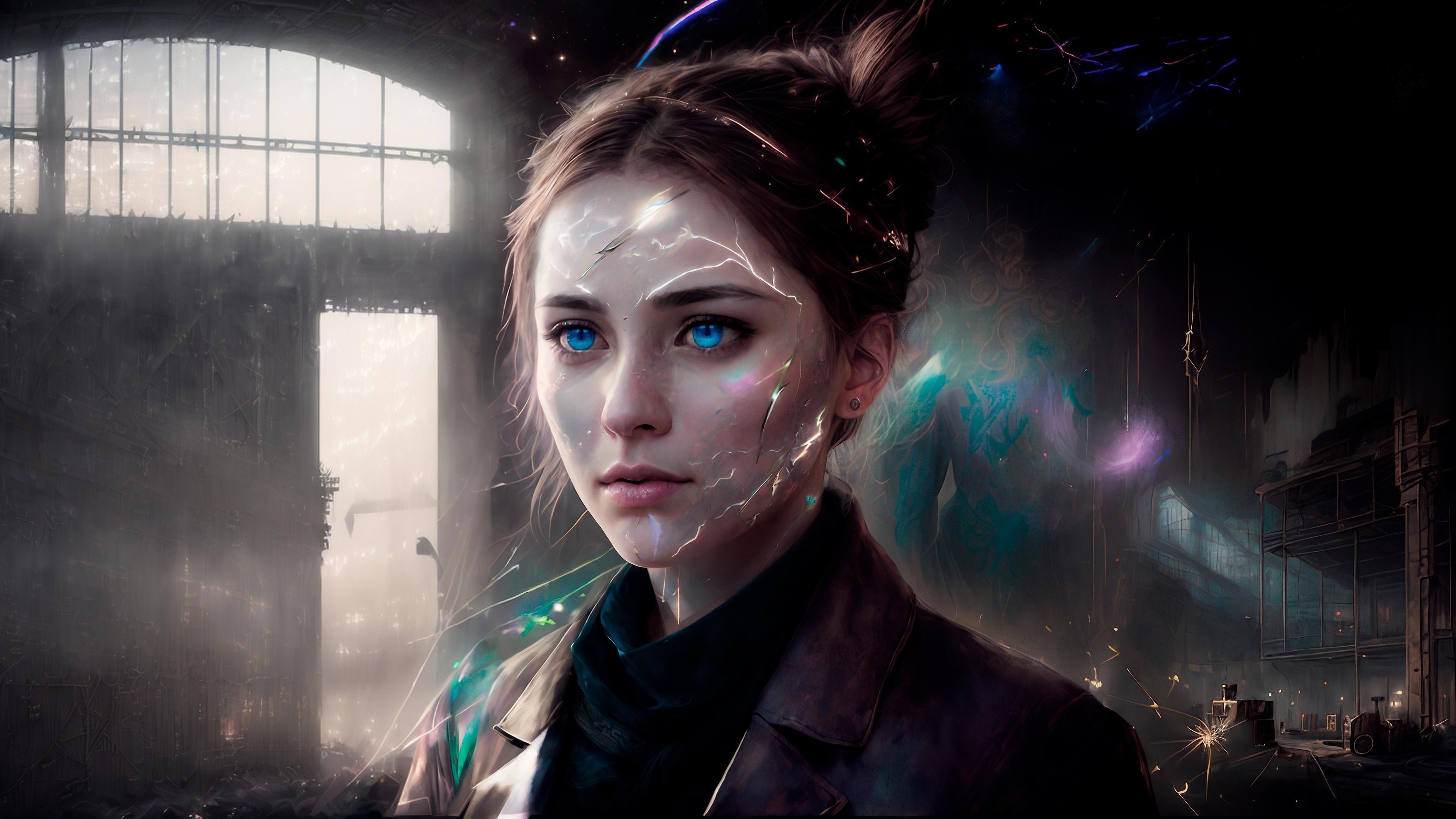Дальше вот эти молнии на лице. Будто дикая энергия бурлит в Джил, прорывая кожу светящимися трещинами. Это уже не случайность, но добиться этого стоило стольких нервов и усилий… Сначала простым перебором (да и ещё таким, который минимально меняет картинку, чтобы не потерять схожесть образа). Потом я нашёл в SD замечательный инструмент Sketch. Там можно схематично изобразить, что нужно, и нейросеть дорисует по этой схеме + промпт. Спасибо жене (тот самый голос из соседней комнаты), которая сейчас заулыбалась. Я ж вообще не умею рисовать, а она художник. Помогла нарисовать молнии. Да и вообще она зайка, так мне помогает, чтоб я без неё делал – ума не приложу.