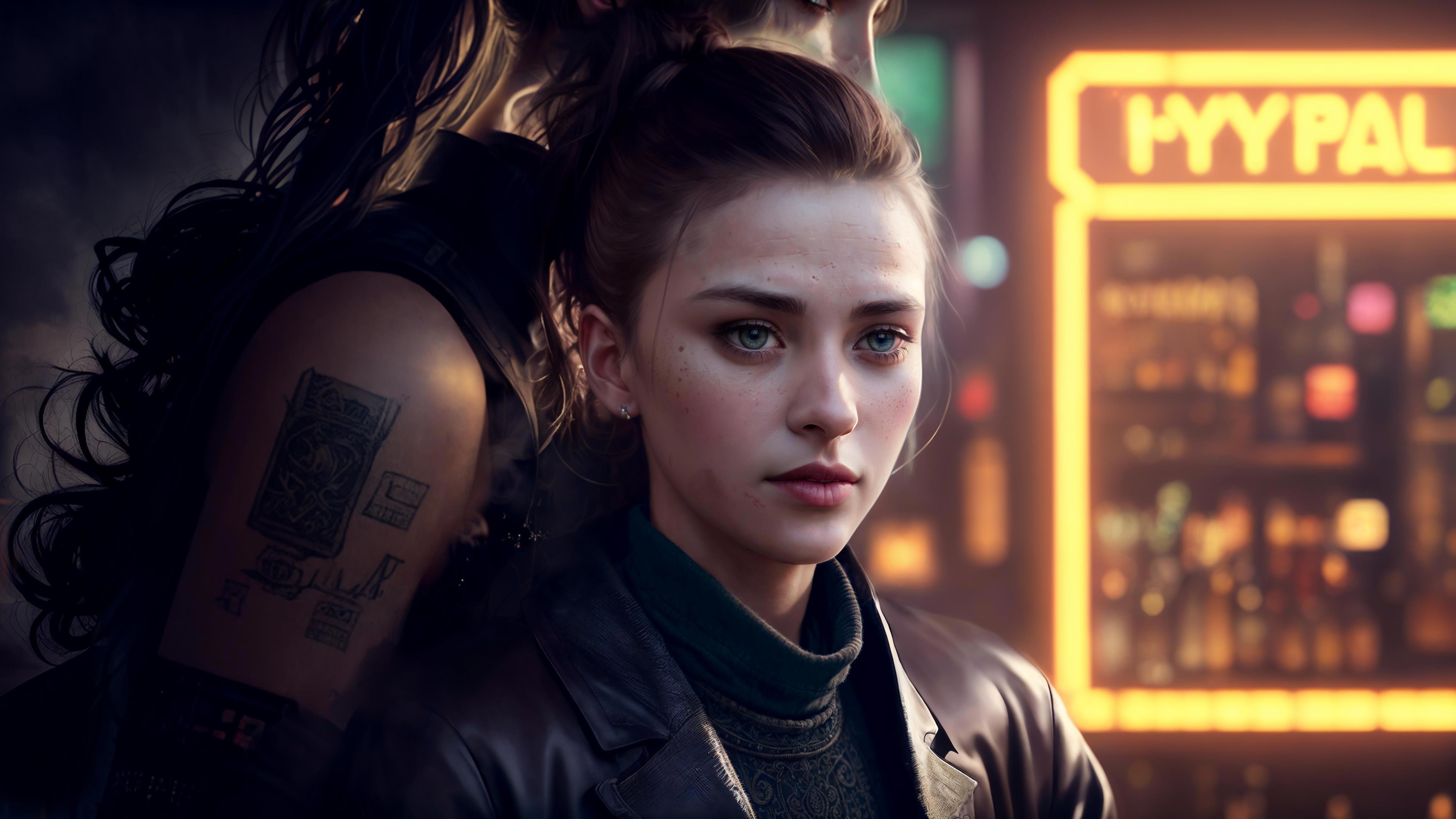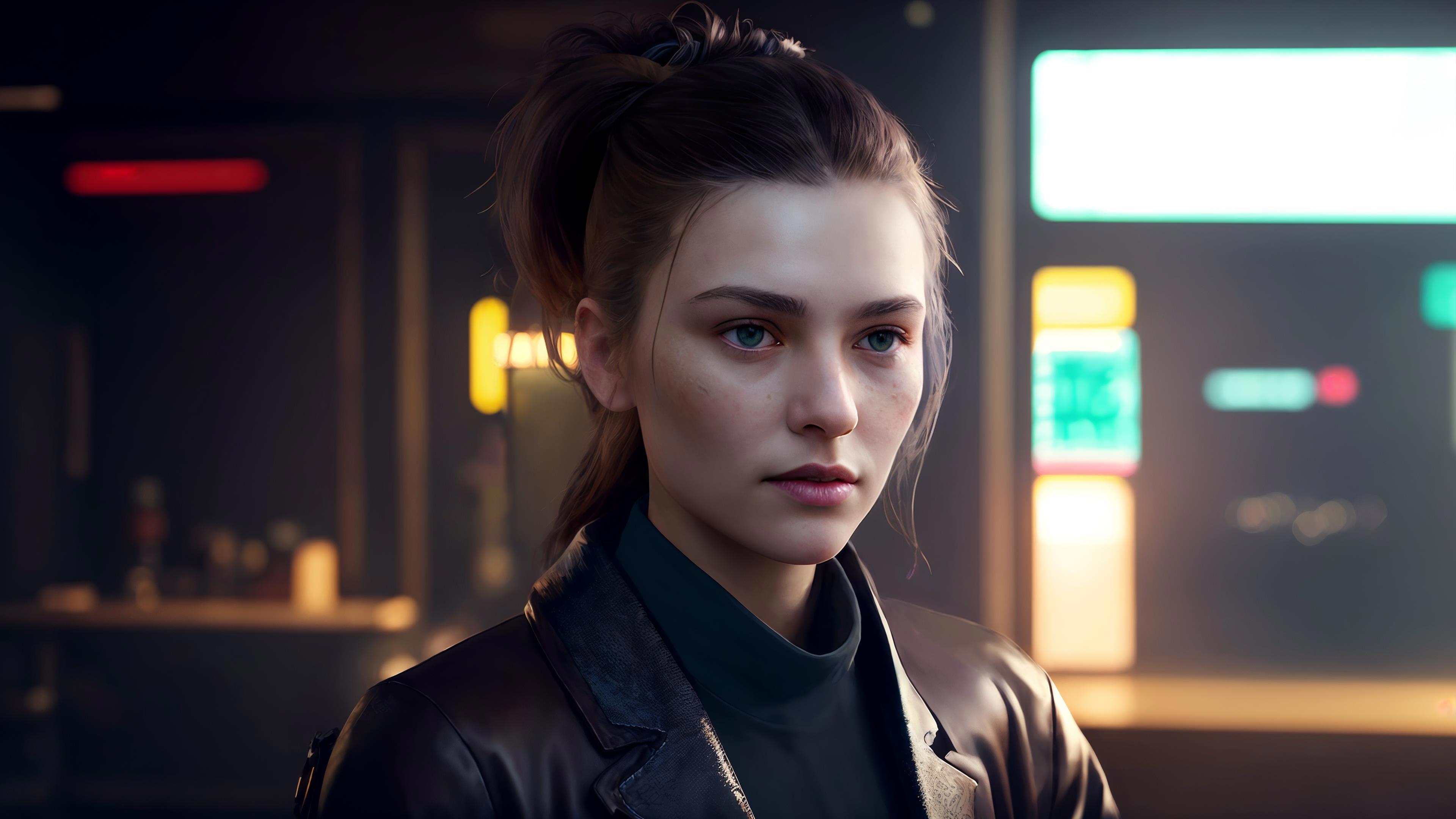 Всё ещё неестественно, кукольность никуда не делась, даже несмотря на то, что я немного обработал кожу. Да и фон какой-то… ну, никакой. В промпте я попросил нечто вроде бара. В «Сэхсвете» много баров. В барах происходит много действия. Мэйтт был в баре. Кросс дружит с барменом, и часто зависает в баре. Кульминация первой части происходит в баре.