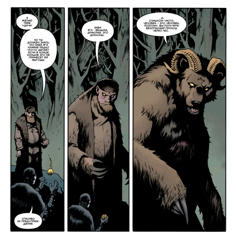 Помимо Кощея в комиксе встречаются Леший, Баба Яга, Соловей-разбойник, Иван Быкович... Можно спорить о том, насколько эти образы соответствуют архетипам русского сознания или чьим-то личным предпочтениям, но они безусловно яркие, проработанные и запоминающиеся.