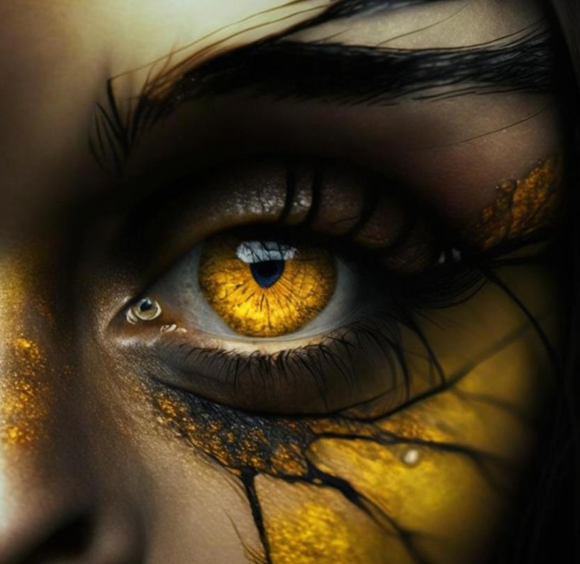Вот это выдало на запрос "глаза цвета тёмного древнего янтаря с застывшими инклюзами зрачков":