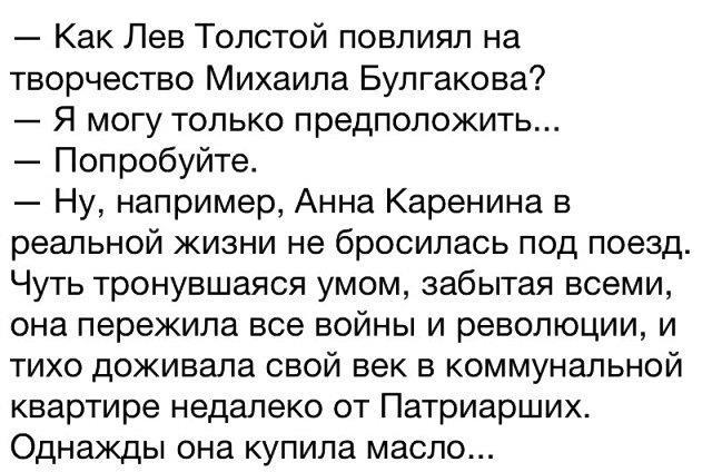 Этот мем начинает играть совсем другими красками, когда знаешь, что сценарий для новой экранизации "Мастера и Маргариты" и для сериала по "Анне Карениной" (Анна К.) написал один и тот же человек.
