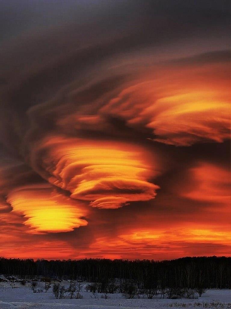 У нас очень часто такие бывают зимой. Либо перистые, либо кучкующиеся, как растёкшаяся плазма из фантастики.