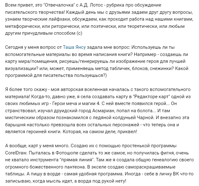 Автор: Таша ЯнсуВсем привет, это "Отвечалочка" - рубрика про обсуждение писательского творчества!