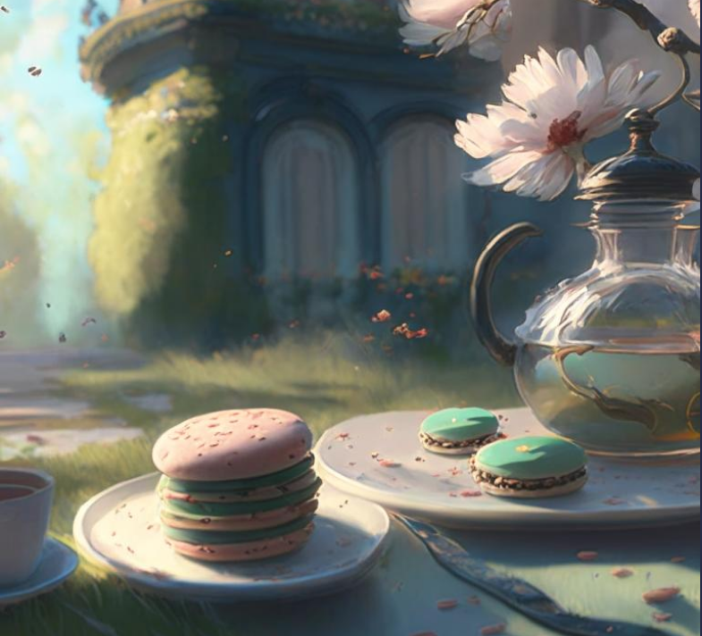 А так нейросеть изобразила вкусности, которыми можно угоститься в весенних кафешках Черноречья: