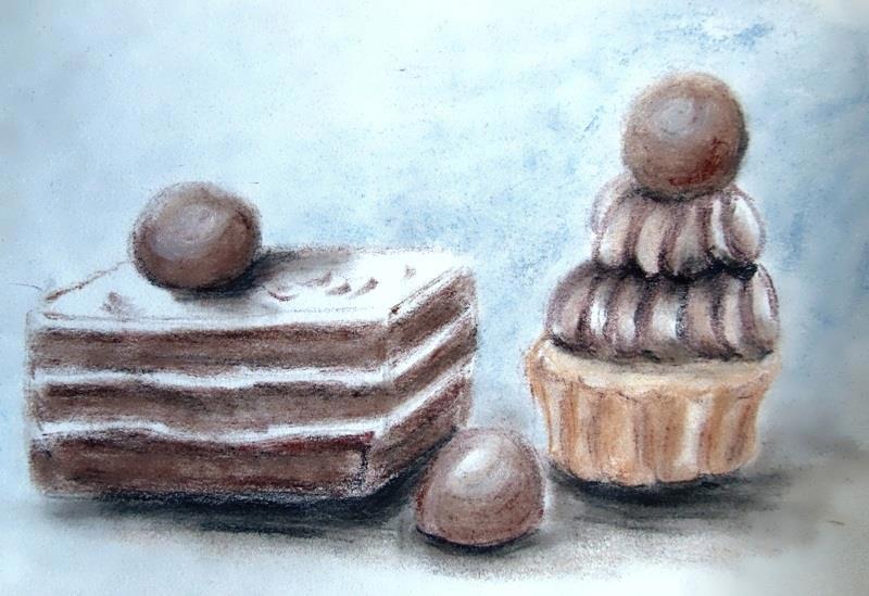 Мне, правда, куда больше нравится сладости поедать, чем готовить. Хотя и рисовать их тоже люблю) Особенно пастелью или мелом: