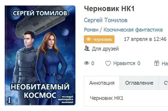 Что же касается НК, то без понятия, когда опубликую. И здесь слегка есть вина того, что творится на литпорталах. В последнее время писули кучкуются в кооперативы, что является махровым договорняком, обычные творцы-одиночки не в силах конкурировать с писучими холдингами. Я уж тактично умолчу, что уязвимости тестят 24/7 не вынимая. Это не наш метод. А так как космофант не особо популярен, как альтхистори или боярка, рекламиться в минус давит жаба.