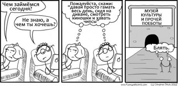 В рамках этих шажочков, т.е. разговоров обо всем, к сожалению, сопровождающих любые отношения: "Если после секса девушка задумчиво молчит и водит пальчиком по вашей груди - будьте начеку, настало время её хитрых вопросов!" ... происходит обычно и экспресс-анализ соответствия вкусов по кинопродукции и искусства в-целом - писателей, художников, музыки, которые, естественно должны совпадать.