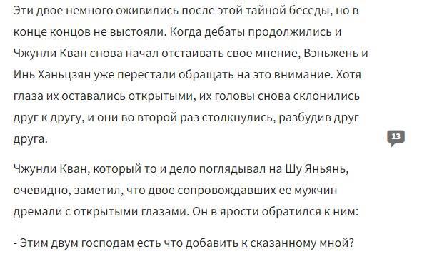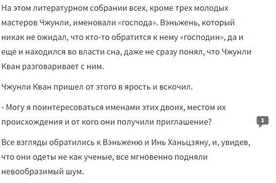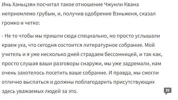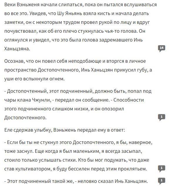 Автор: Марика ВайдТут между делом решила почитать одну китайскую новеллу. Я пишу сянься, они пишут сянься... все люди братья :-) В общем, давно так возмутительно громко не смеялась! Скриншоты прилагаю. Речь идёт о... кхм... литературном собрании, на которое пожаловали два демонических культиватора очень высокого уровня. Ну а литераторы тоже секта, только культивирующая через, так сказать, творчество.