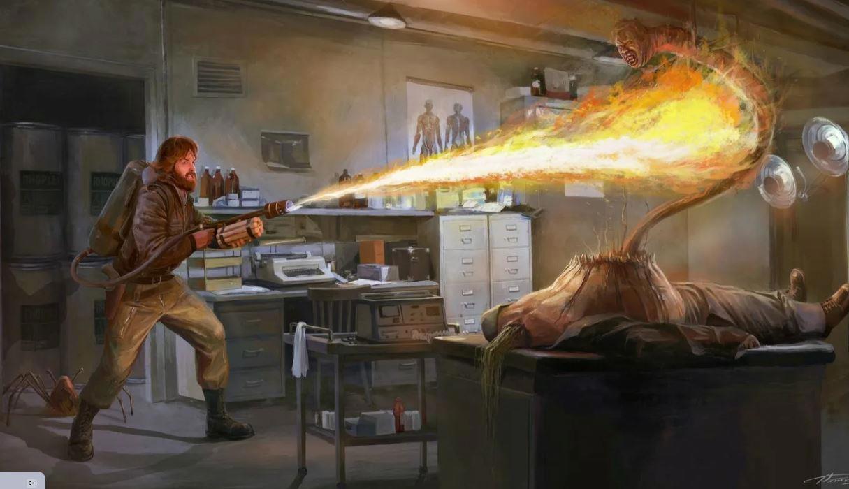 В общем, столкнувшись с «нечто», а затем заехав на базу к норвежцам, американцы погибают все до единого. Им удается уничтожить лишь часть «нечто» в которое превращаются последовательно одно за другим их тела. В основном средство единственное – огонь.