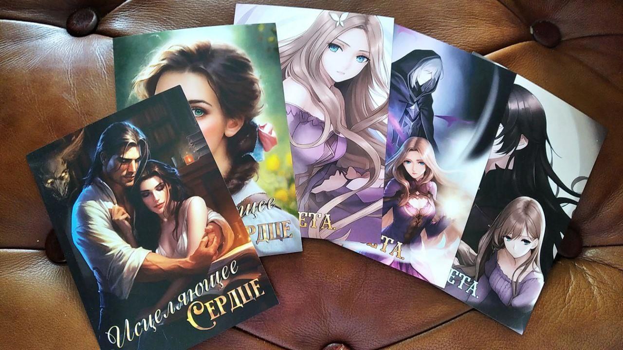 Сегодня с типографии я забрала открытки, которые с любовью и теплом сделала для своих читателей. На них изображены арты с персонажами моих двух проектов - как добрыми, так и злыднями.