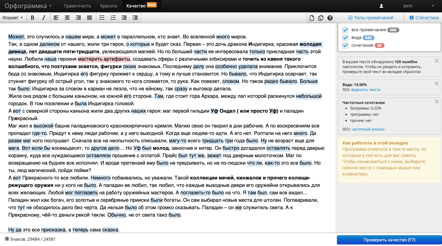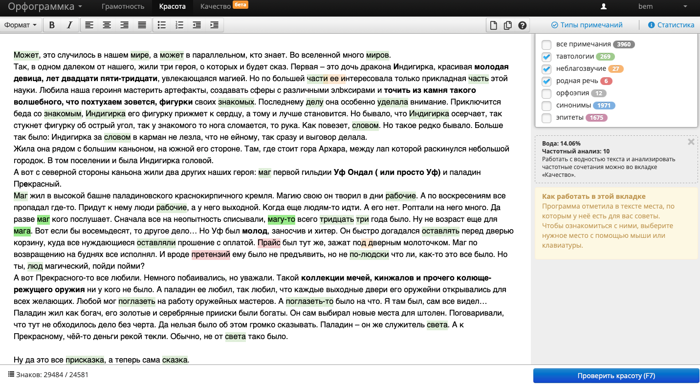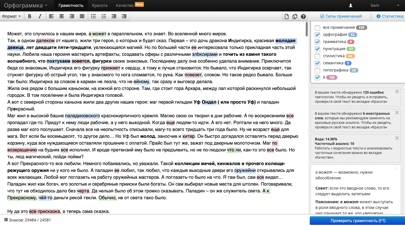 Да, нужно понимать, что это не панацея. Но хорошее подспорье для таких, как я. Почему я это утверждаю? Основываюсь на личном опыте. Сервис мне помогал с двумя последними рассказами. Если в первом мне еще указали на 2 ошибки, то во-втором случае нет.