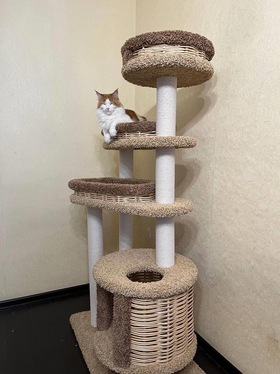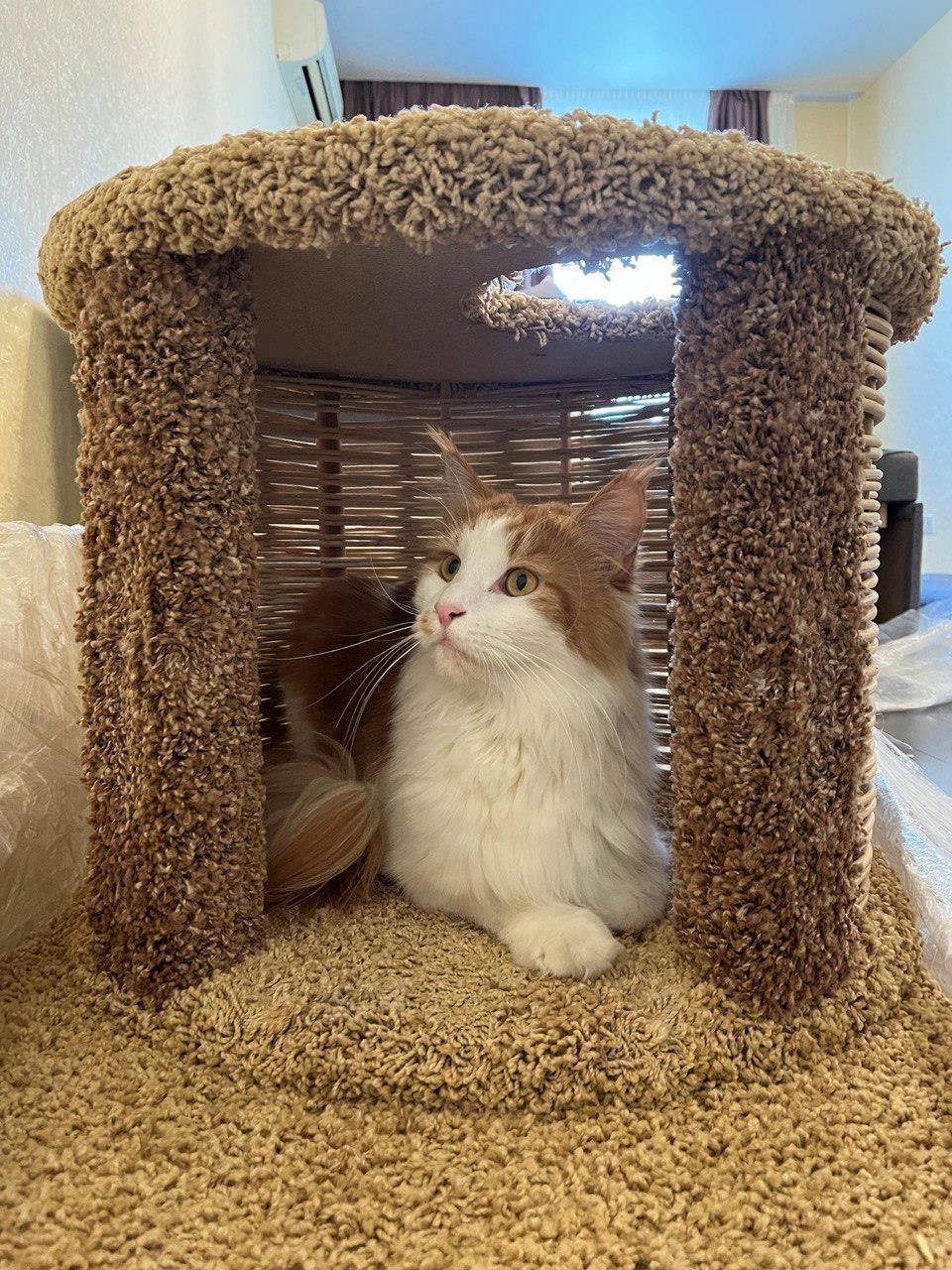 Этот комплекс - одна из самых лучших моих покупок за последнее время. Он закрывает почти все кошачьи потребности: игра, сон, укрытие. И даже когти Кнопочка точит исключительно об когтеточку комплекса.