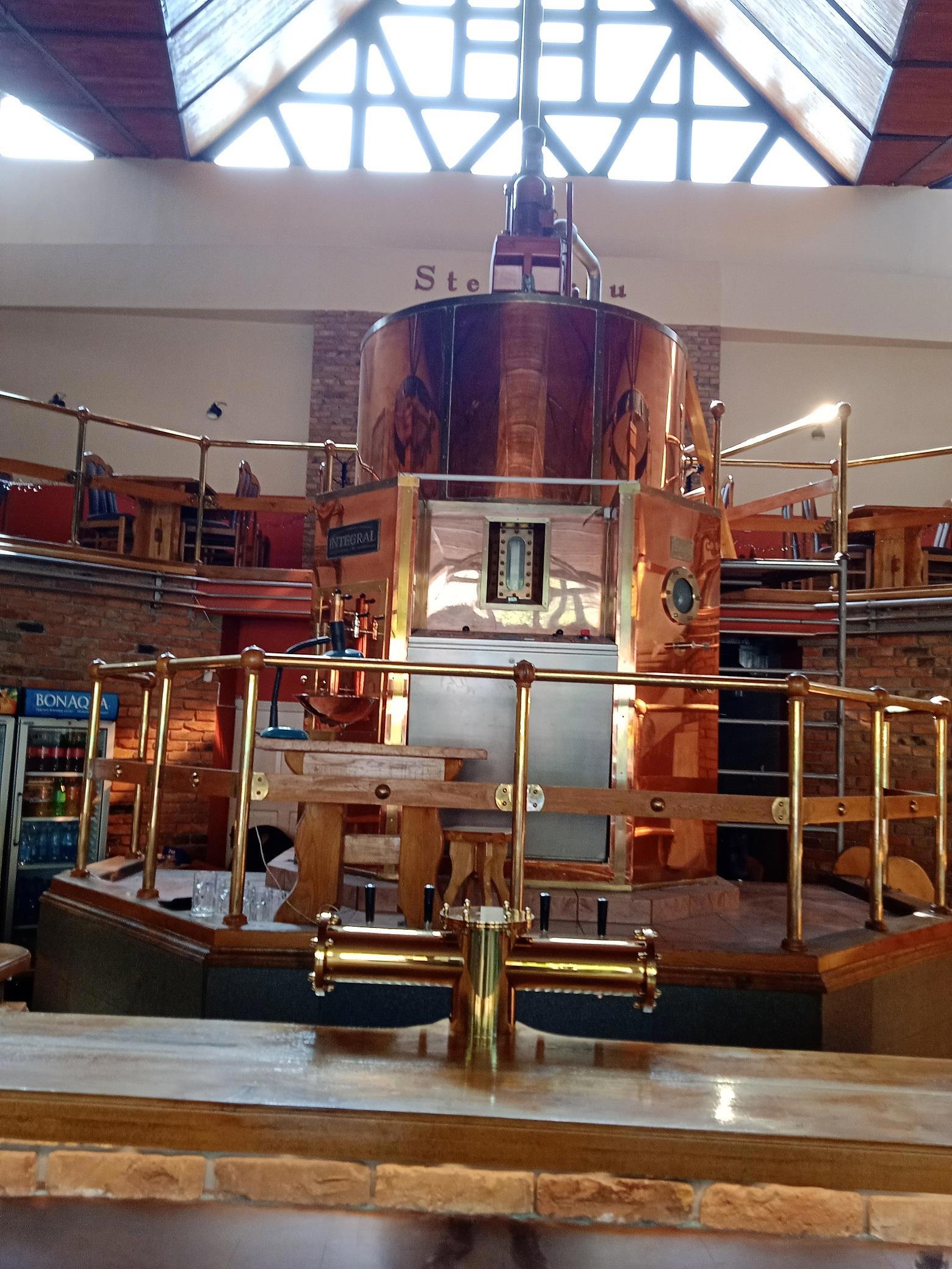 Автор: Руслан БирюшевСегодня я с семейными побывал на довольно занимательном мероприятии - весенней благотворительной ярмарке, организованной посольством Германии в Бишкеке. Проходило мероприятие в пивной при заводе "Штайнбройн" - чудесном зелёном местечке с фонтаном, посреди сонного жилого квартала, где даже звук автомобильного двигателя среди бела дня не услышишь. Здесь собралась изрядная часть европейской диаспоры города, разговоры вокруг звучали в основном на немецком и английском. Местные жители торговали с лотков всяким рукоделием, а молодые немцы - видимо, студенты, проходящие какую-то практику при посольстве - продавали сладости, пиво и колбаски. Колбасок я отведал три вида - говяжьих, свиных и куриных, с горчицей и кетчупом. Остался крайне доволен. Но, конечно, отдельные интерес представляли товары наших родных мастеров. Впрочем, для начала в домике пивной я заснял стойку бармена. Вот с этим чудищем позади неё. При виде сего агрегата возникло невольное желание принять квест на его активацию.