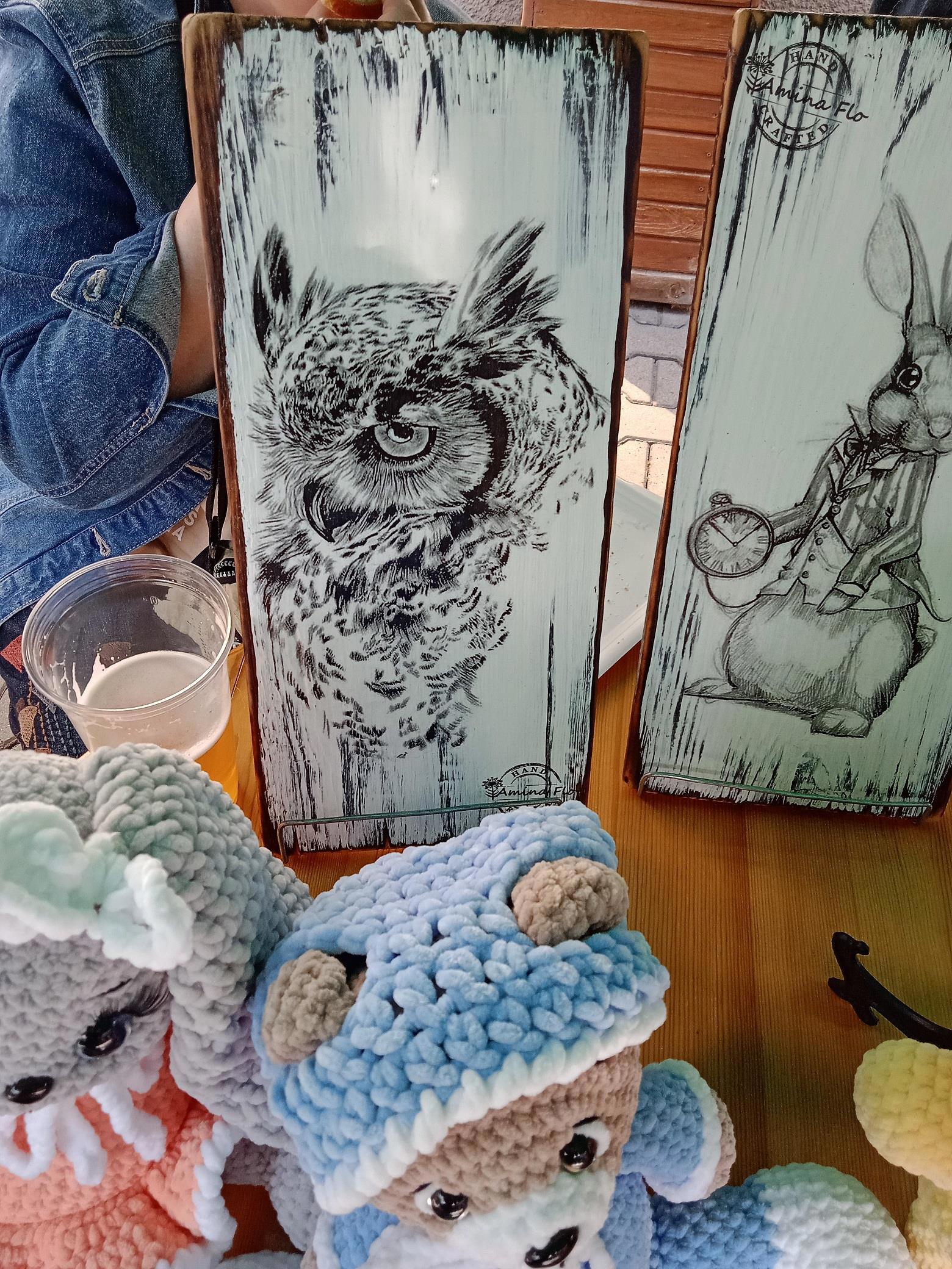 И из разряда "видит глаз, да денег нет" - портрет белой совы, сразу напомнивший мне о нашей текущей протагонистке, Розе Гранчи, ещё не успевшей получить такое прозвище, но имеющей все надлежащие задатки ^_^ Его я не купил, но с разрешения заснял на память.