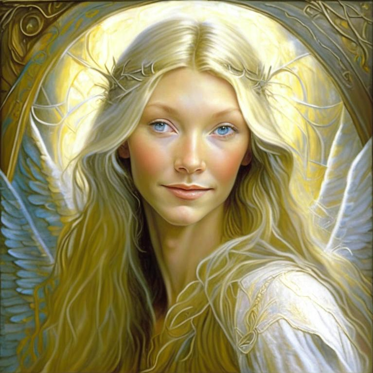 Но тут нашу эпопею ждёт очередной твист жанра - из фарса в неожиданную находку. Убрав из запроса имя Галадриэль и оставив "Прекрасная эльфийка королева, похожая на Хизер Локлир" я внезапно получила... Нет, совсем не то, что искала, а картинку души девочки, про которую хочу написать рассказ, как она хотела родиться, да не вышло!