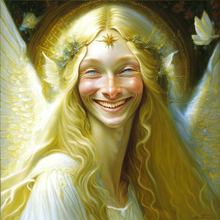 В общем, устав от попыток нарисовать придуманный образ, я решила попробовать в Кандинском изобразить очень красивую Галадриэль-ангела в том же стиле Джеймса Кристенсена. Ну и как вы думаете, что я получила?