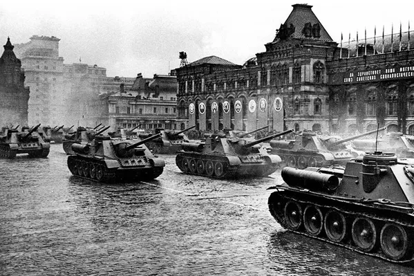 Исторический парад 1945 года длился два часа (122 минуты) под проливным дождём.