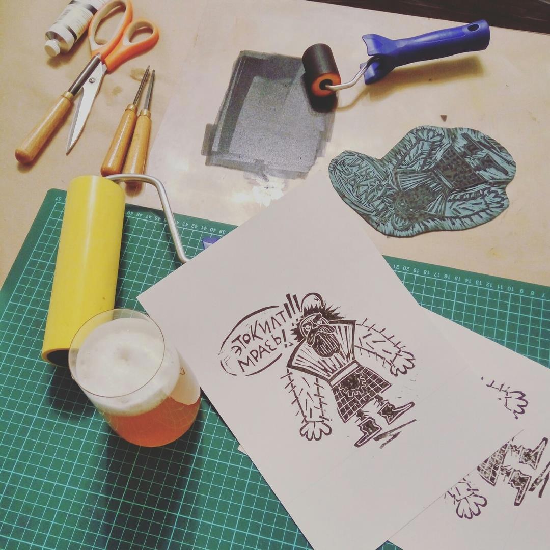 Автор: TanmornaВ прошлом году я освоила технику линогравюры. Надо сказать, это монотонное и нуднючее занятие как раз по мне! Сидишь, режешь, в руках острая как бритва стамеска - сплошной релакс и умиротворение.