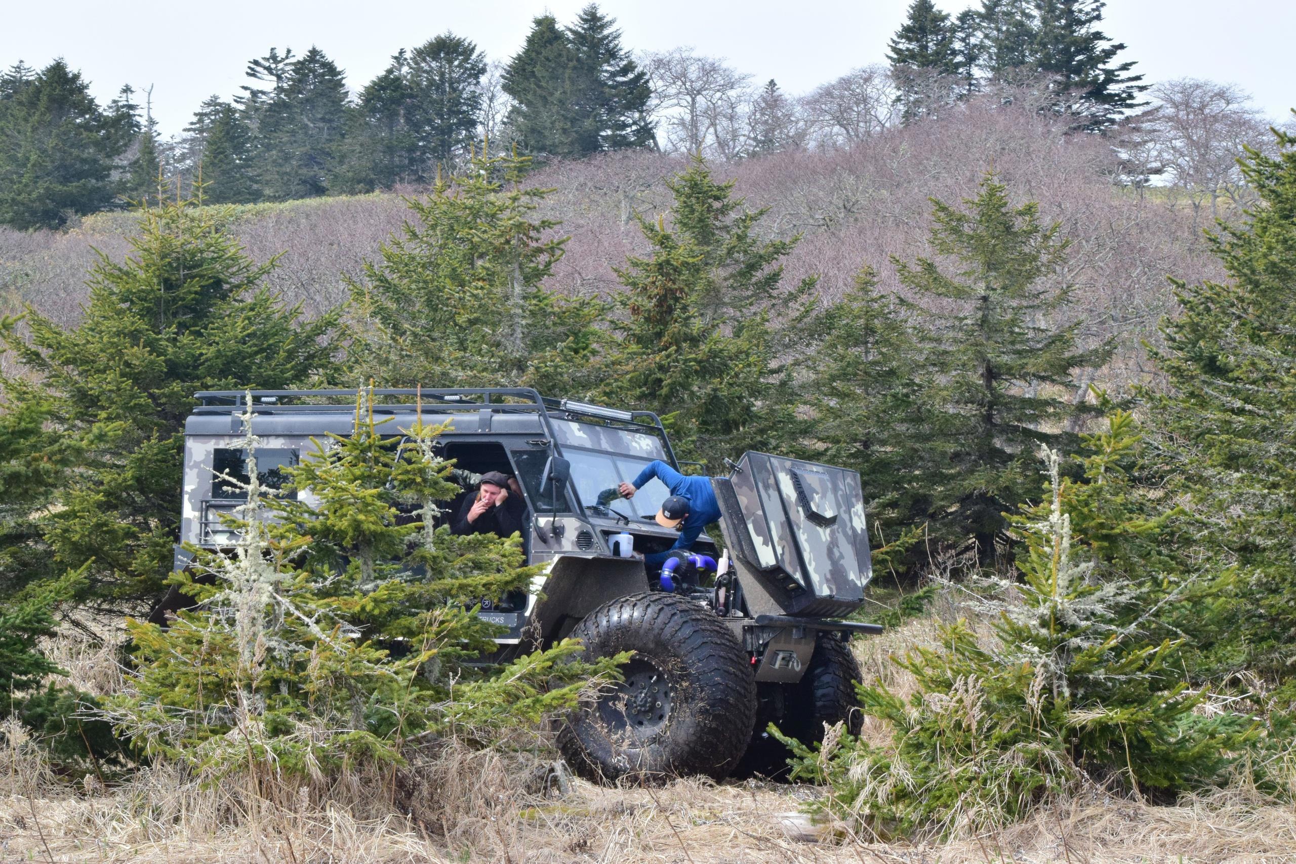 Катались в конце апреля на север острова, к подножью вулкана Тятя на новом вездеходе, который ласково зовут "ебучий крокодил". Зачеркнутость - из-за недоделанности конструкции