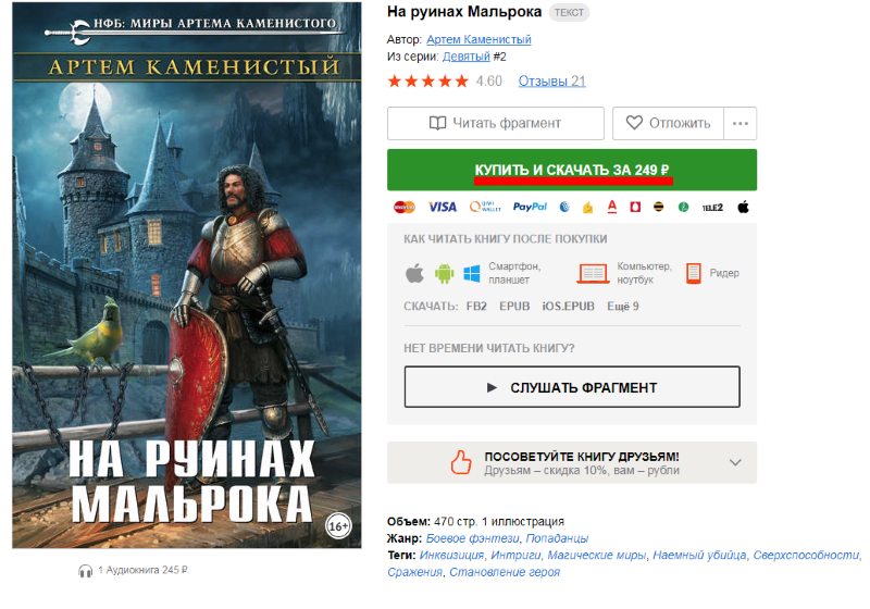 P.S. Действующая скидка в "Лабиринте" доступна всем покупателем (даже тем, кто пришёл впервые), да и распродажи там действуют периодически, так что то, что 226 рублей - это акционная цена, мало на что влияет.