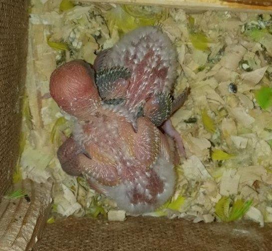 Волнистые попугайчики в двухнедельном возрасте