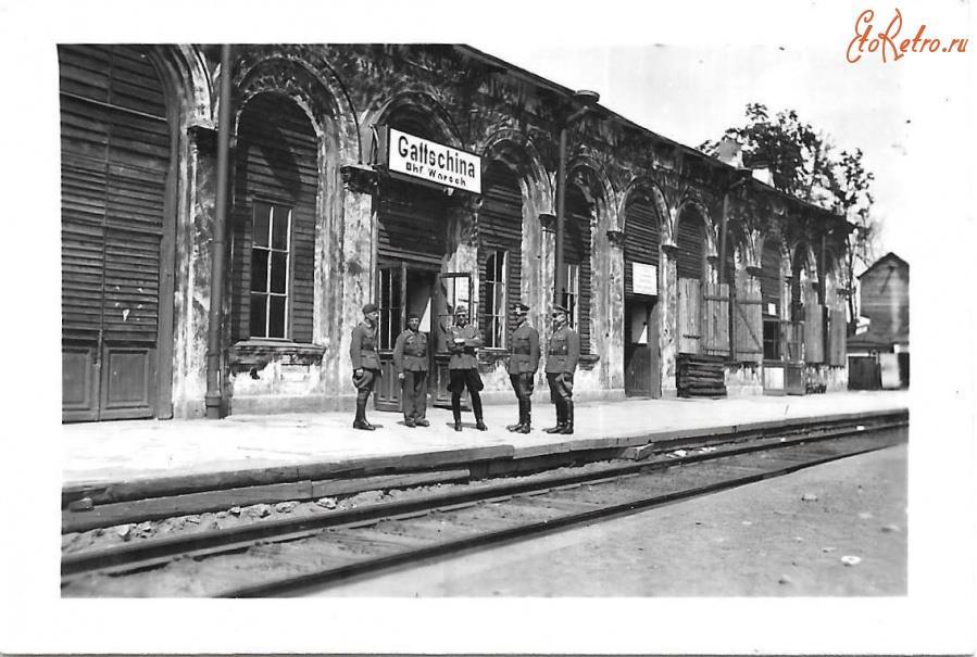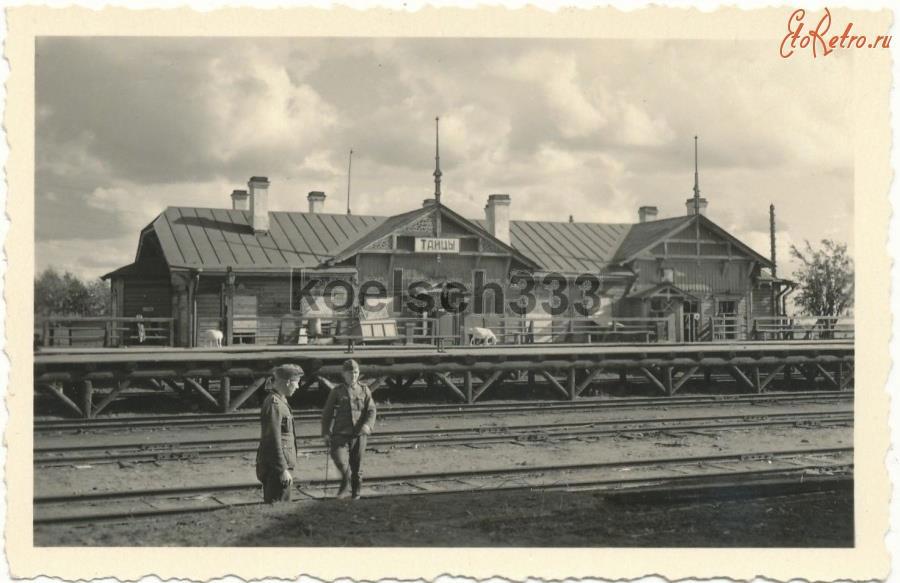 Железнодорожный вокзал станции Тайцы во время немецкой оккупации в 1941 году.