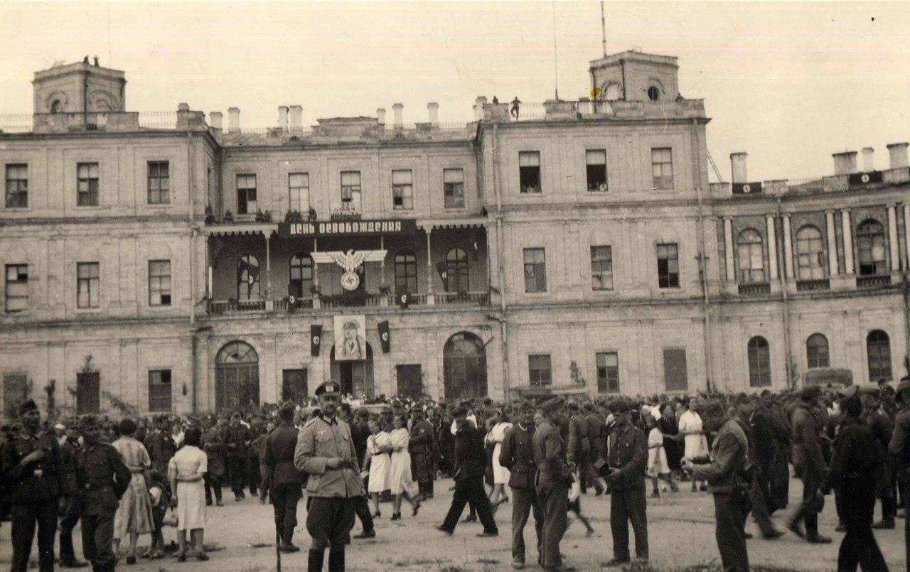 Красногвардейск (Гатчина). 22 июня 1943 г. Введенный оккупационными властями праздник "День освобождения" на плацу Гатчинского дворца.