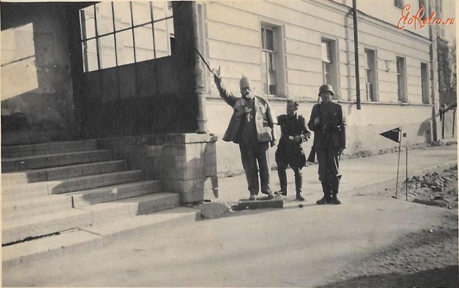 Измывательства над памятником Ленину в Красногвардейске (Гатчине) 1941 г.