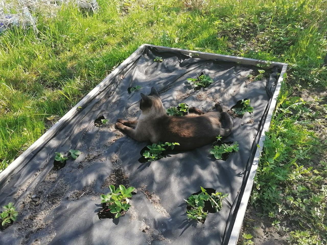 В прошлую пятницу котикам не удалось спасти мир. Так что навёрстываем: в этот раз соседский котик в саду, уже известный вам как Ниндзя Косоглазый, охраняет нашу клубнику. Чтобы никто даже не посмел подойти!