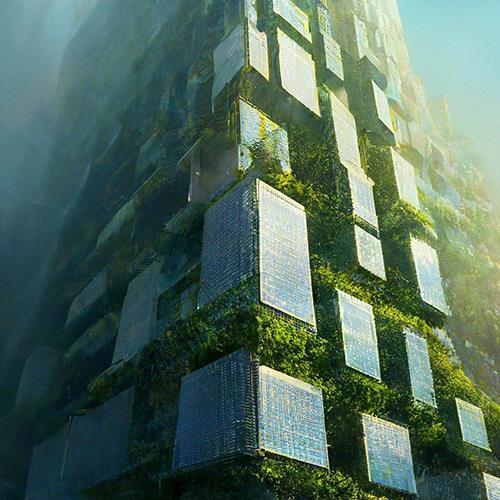 Здание исследовательского центра было похоже на башню из дженги. Этажи были трёх цветов: синего, голубого и белого. Также они могли вращаться независимо друг от друга. Например, оранжереи вращались вслед за солнцем, чтобы захватить больше тепла и света. Экономия электроэнергии тоже входила в плюсы разворачивающихся этажей.