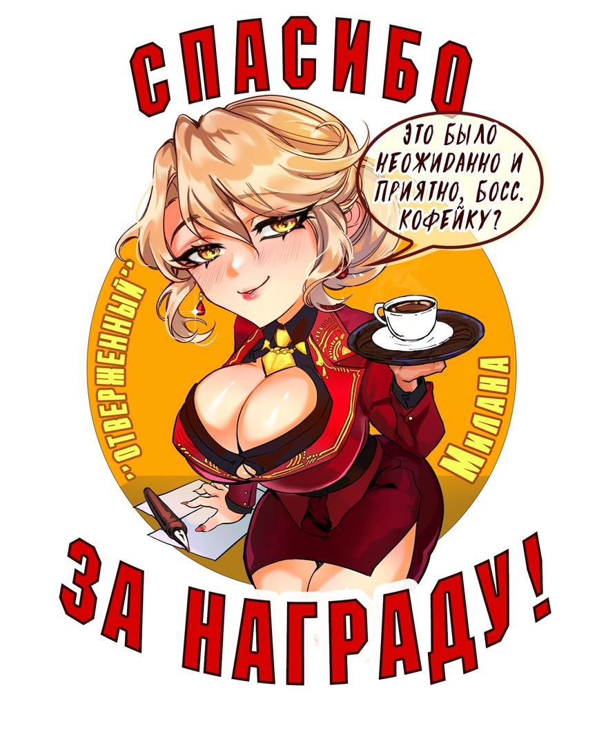 Милана с чашечкой кофе для босса украсит гостевую босса читателя, закинувшего награду 200 рублей и выше или за любую награду при условии, что первые три чибика собраны.