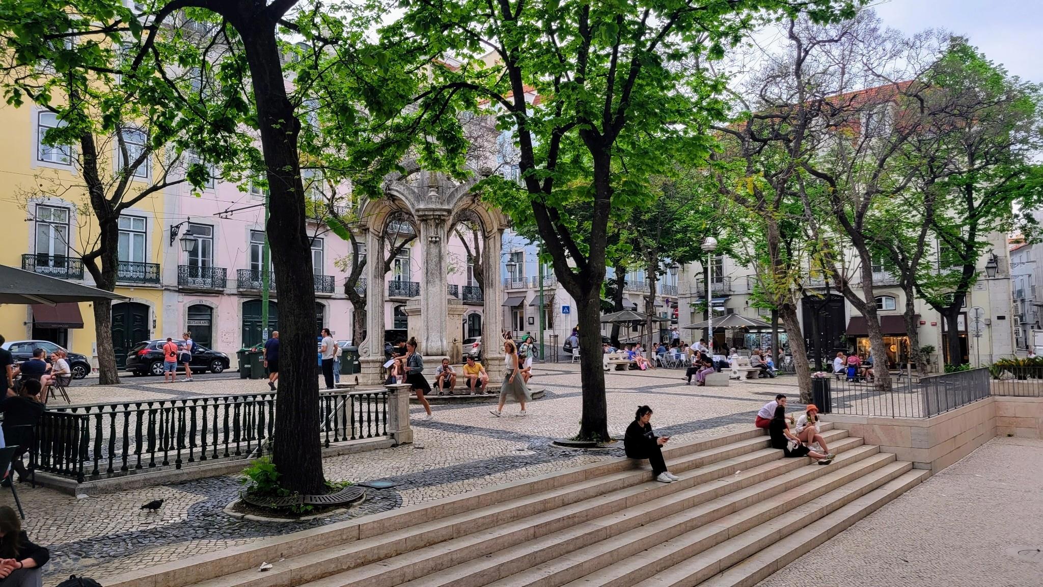 Это обычная площадь Верхнего города Шиаду. Ничего не говорит о том, что вы находитесь намного выше, чем уровень первого этажа лифта.