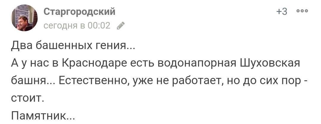 N.B. В одном из последующих выпусков мы подробно поговорим и о гениальном Шуховском Гиперболоиде Вращения, как основе создания лёгких и прочных металлических архитектурных конструкций. А сейчас я прост хотел бы вкратце о нем упомянуть.