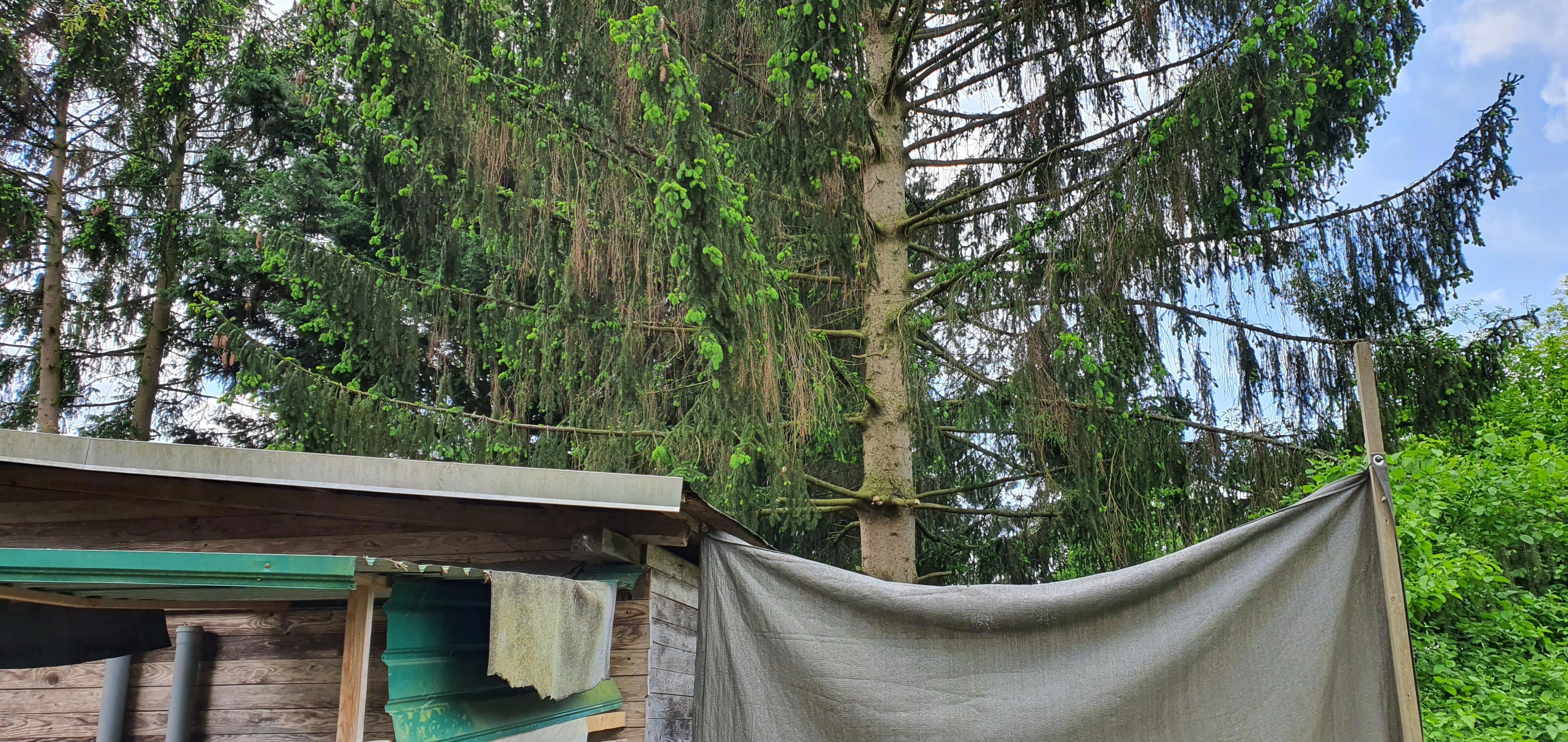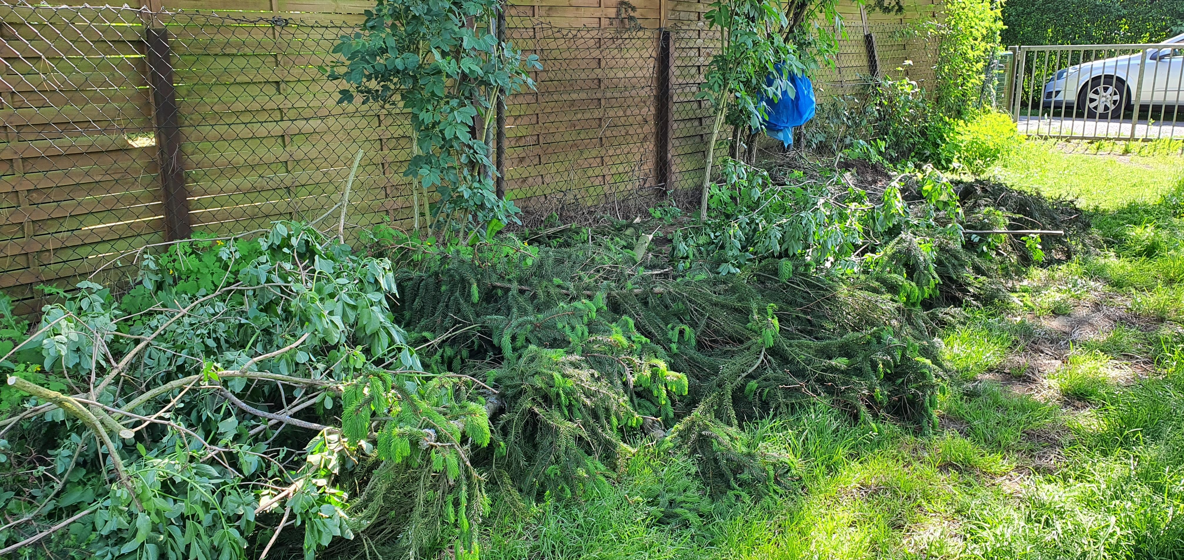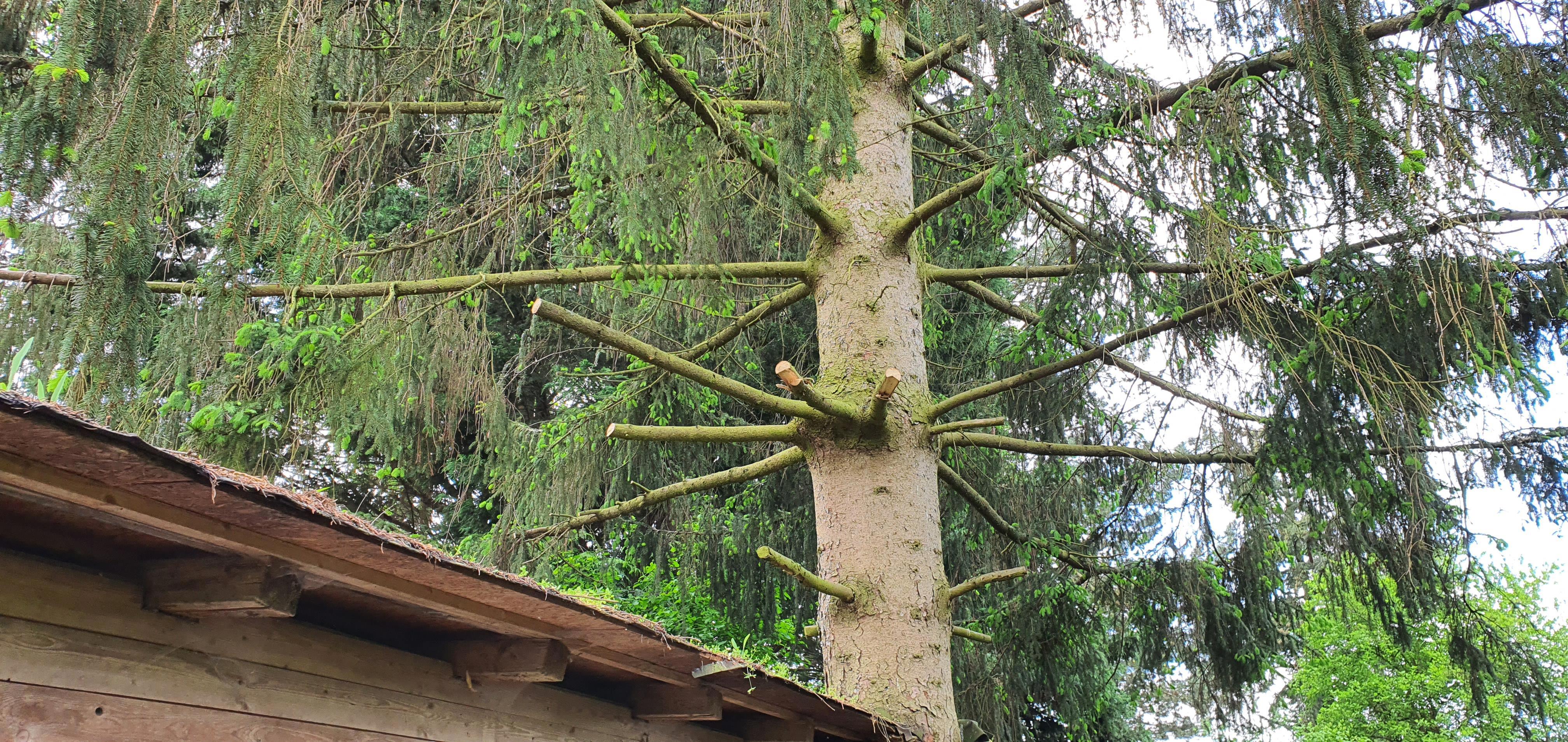 Это все ветки ещё предстоит спилить, что над моим садом висят.
