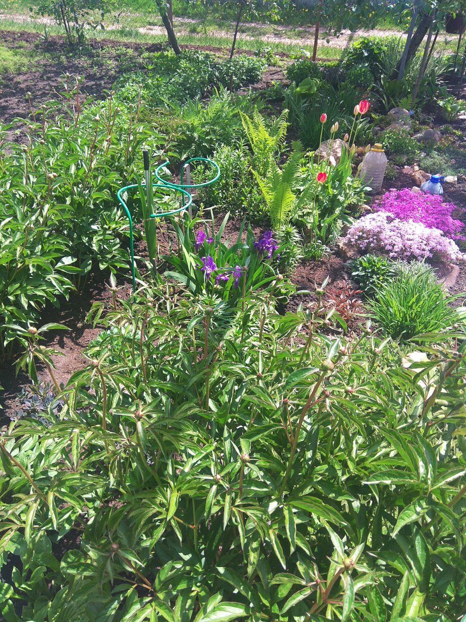 Некотрые растения пока под укрытием из пластиковых бутылок. Но уже через месяц здесь будет яркий цветущий уголок!