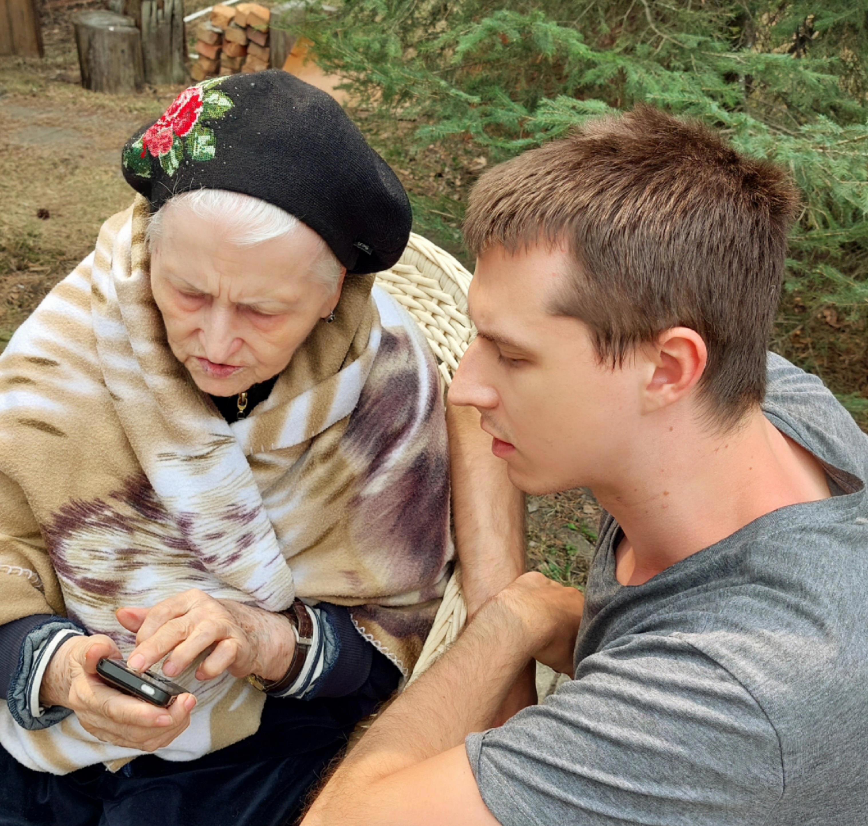 но тут у племянника открылся недюжий педагогический талант... только ему удалось объяснить бабушке правила пользования новым аппаратом без нервов... вот же ведь железная выдержка у парня!)