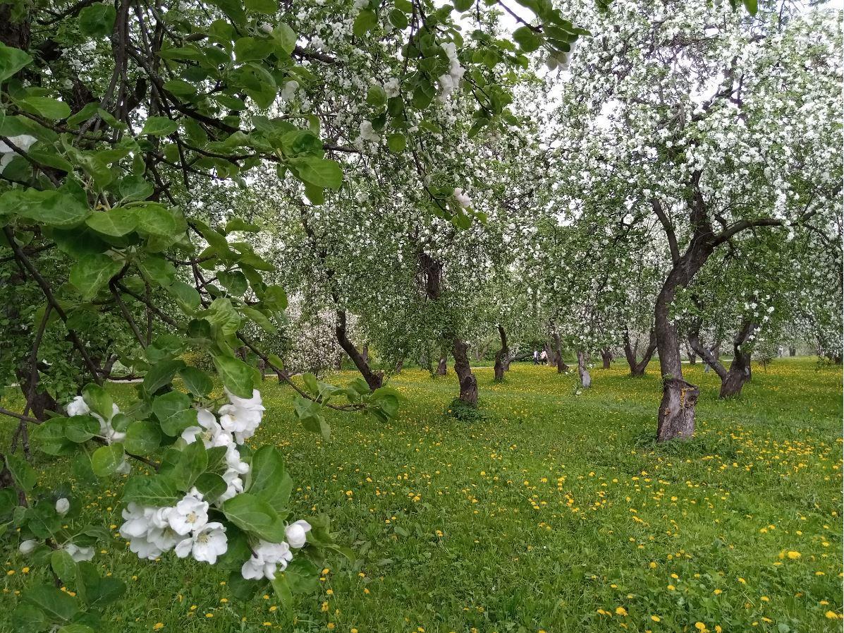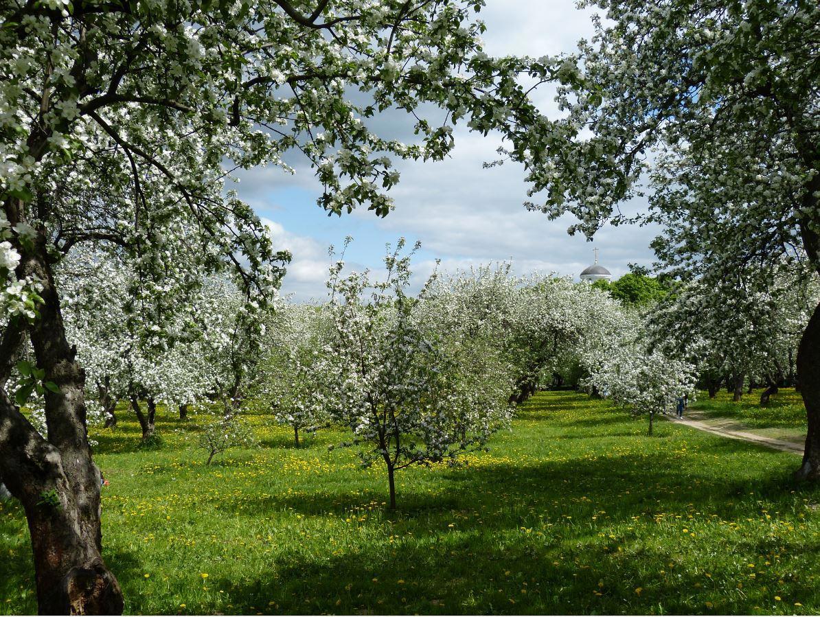Одним из лучших мест Москвы, где можно полюбоваться цветущими садами, является музей-заповедник Коломенское. Дьяковский сад на его территории существует уже несколько сотен лет. Яблони здесь очень старые, кряжистые и раскидистые.