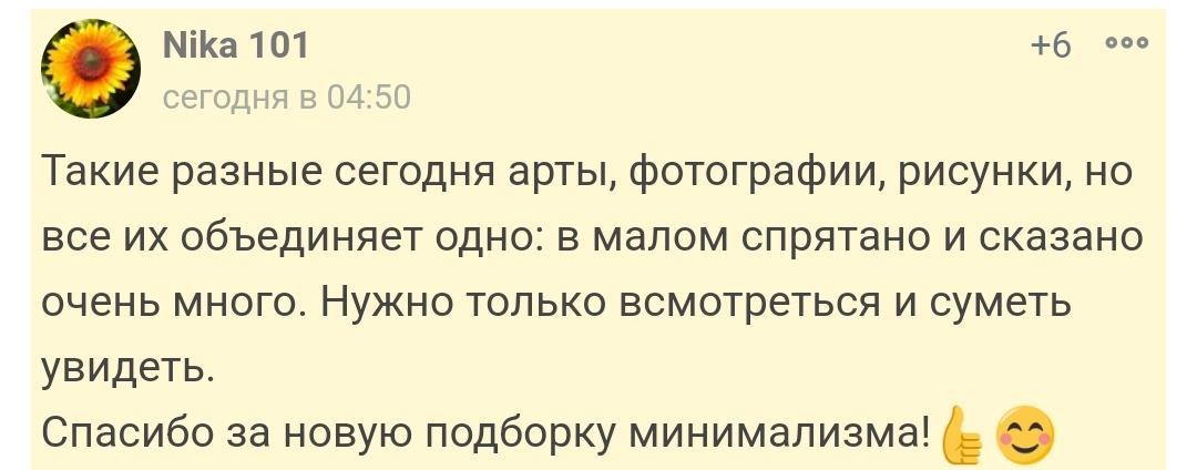 Минимализм это как сигнал от одной планеты к другой, от одного одиночества к другому. Кто-то отправляет в фотографии кусочек своей души в никуда и замерев сердцем ждет ответа. Возможно ли совпадение волн и мыслей в той неразгаданной пустоте? Возможно ли, что в бесконечной Вселенной существует кто-то, кто думает также как ты, и он не только услышит тебя, но и отправит ответный отзыв?