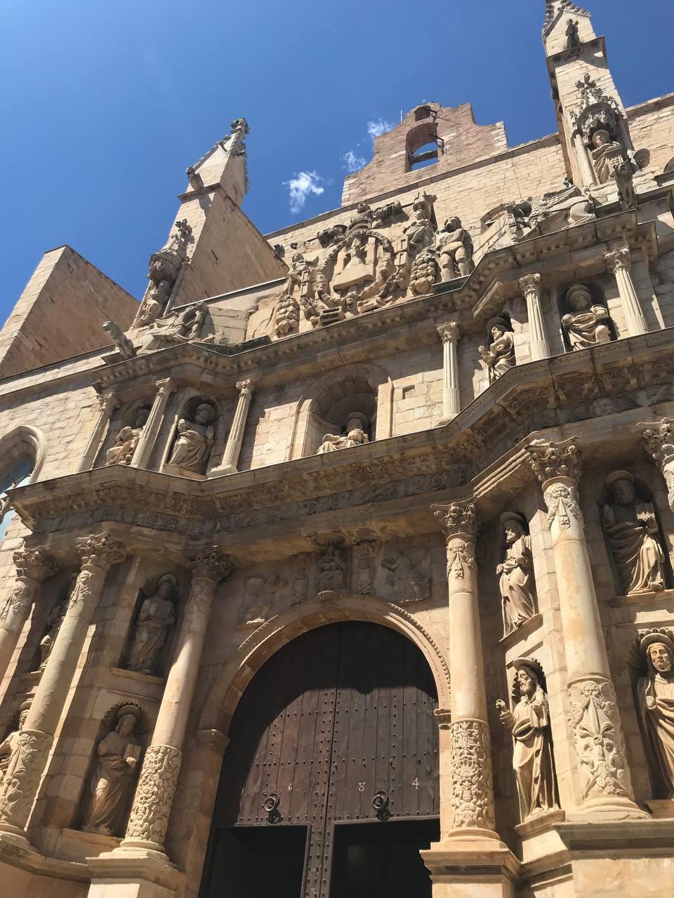 Мы зашли в церковь Сан-Мария-де-Монблан, она выглядела невероятно прекрасно благодаря изящным статуям на стенах.
