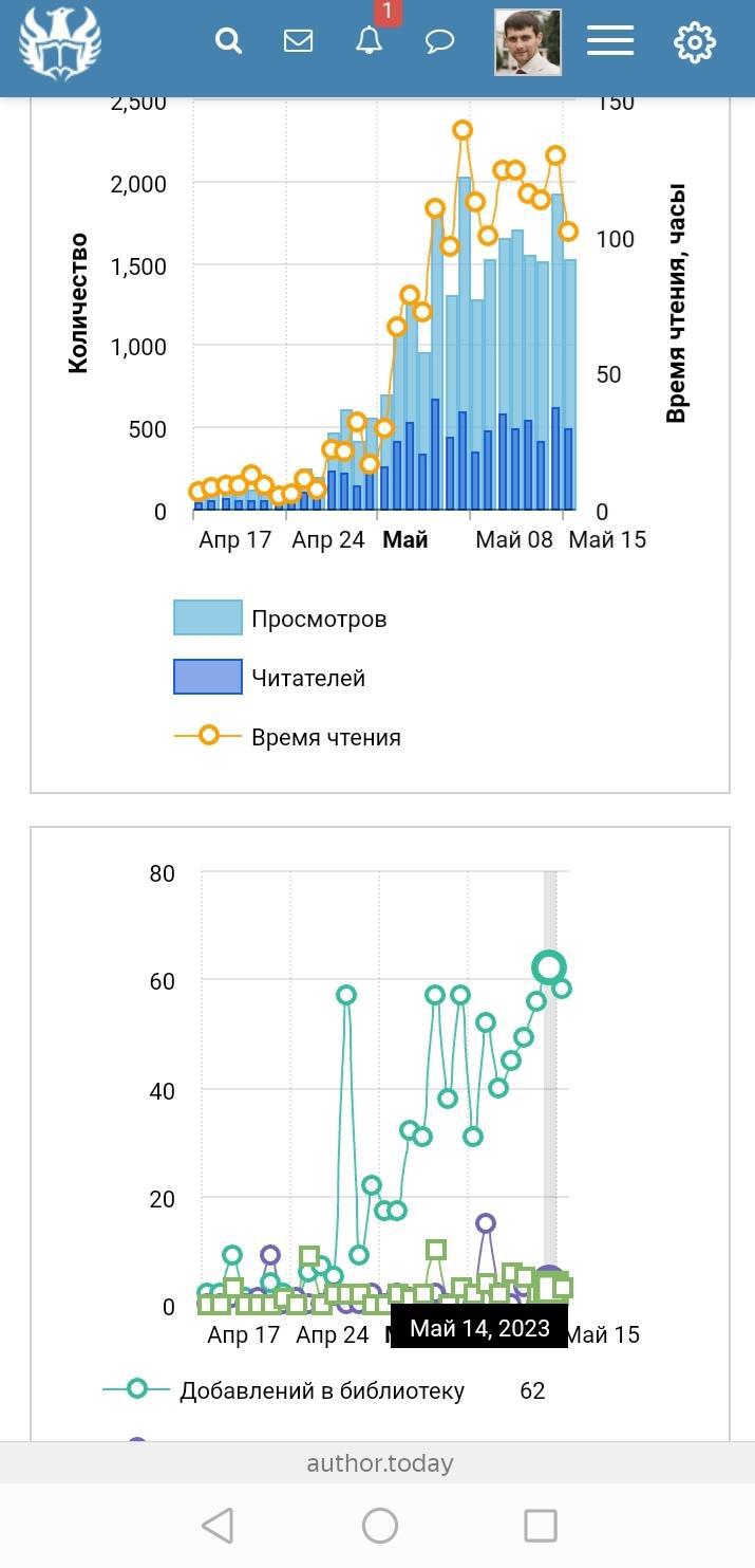 И заодно активность читателей за период с середины апреля по май для наглядности. Единственное что - в конце апреля делал скидки, 28 числа там был значительный рост библиотек - в остальное же время цикл без рекламы еле существовал: