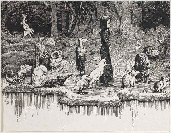И тут же пояснял: «Подобно токарю, отлаживающему свой станок для работы в новом режиме, иллюстратор должен отлаживать свою психику, перестраивая ее каждый раз для работы над новой книгой. Дело не в изменении только техники рисунка. Сначала нужно решить целевую установку иллюстрирования».