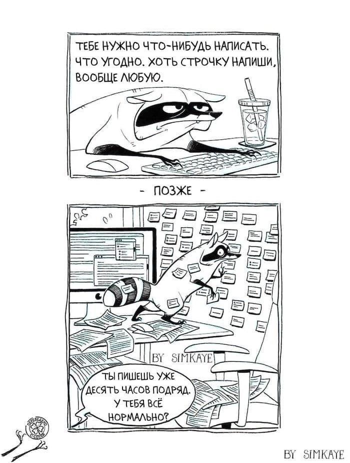 Автор: Лина НиколаеваЗавтра у меня стартует выкладка новой книги, и я сотню раз проверила, как смотрится ее страница, правильная ли глава лежит в черновиках, да и нормально ли, вообще, написан первый абзац. Почему каждый раз нервничаешь, будто идешь с самой первой книгой? Так или иначе, чтобы отвлечься, я принесла вам немного мемов на актуальные писательские темы и от всей души заявляю, что вам нужно сделать небольшой перерыв ради них.