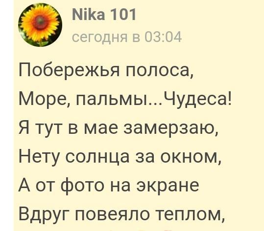 N.B. Почти что июнь уже "на носу", а ночью у нас было 0°С. И сильный холодный ветер уже второй день. Я даже однолетние цветы на ночь пакетами прикрывал. Жалко, если этот внезапный холод им вред нанесёт. И вот из-за этого холода мне вдруг очень захотелось к тёплому морю, к песочку, к пальмам.