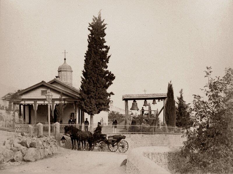 Местные жители у входа в церковь Святого мученика Феодора Тирона в Верхней Аутке, близ Ялты.