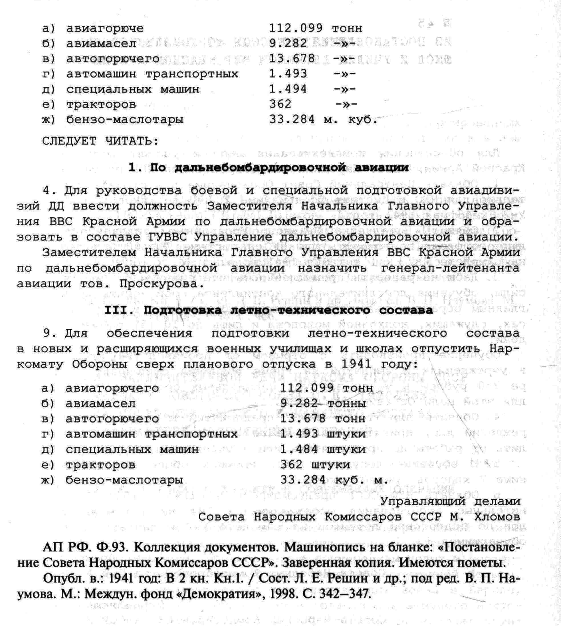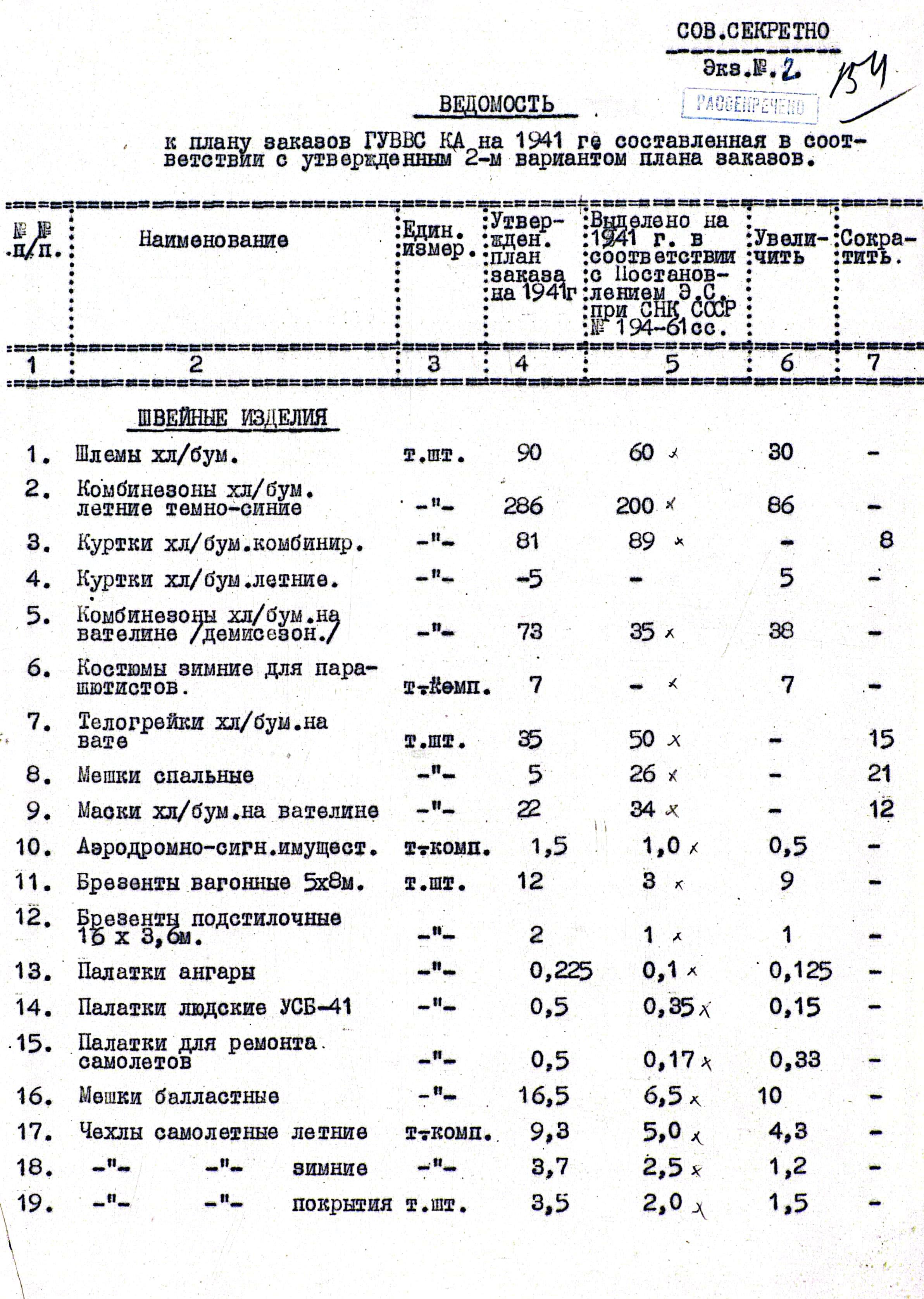 Подготовленные к публикации, эти документы начала 1941 года давно ждали своего часа, но всё время откладывались в сторону, постоянно что-то мешало, никак не складывалась общая, целостная картина. Не помню, что в них привлекло. Может упоминание фамилии генерал-лейтенанта П.В. Рычагова, может то, что они относились к ВВС, а может что-то ещё. Вроде и документы на одну тему, и дополняют друг друга, на чего-то объединяющего их, объясняющего причину их создания, найти не удавалось никак. Непонятно было, зачем интенданты Главного Управления ВВС КА сформировали и утвердили у командующего план заказов на 1941 год, по многим позициям противоречащий Постановлению Экономического Совета при СНК СССР. И ладно бы расхождения составляли сотни единиц, так нет, ГУВВС КА предлагал скорректировать заказ на тысячи и даже десятки тысяч единиц. Такое могло быть только в том случае, если после выхода Постановления ЭС при СНК произошло существенное изменение численности.