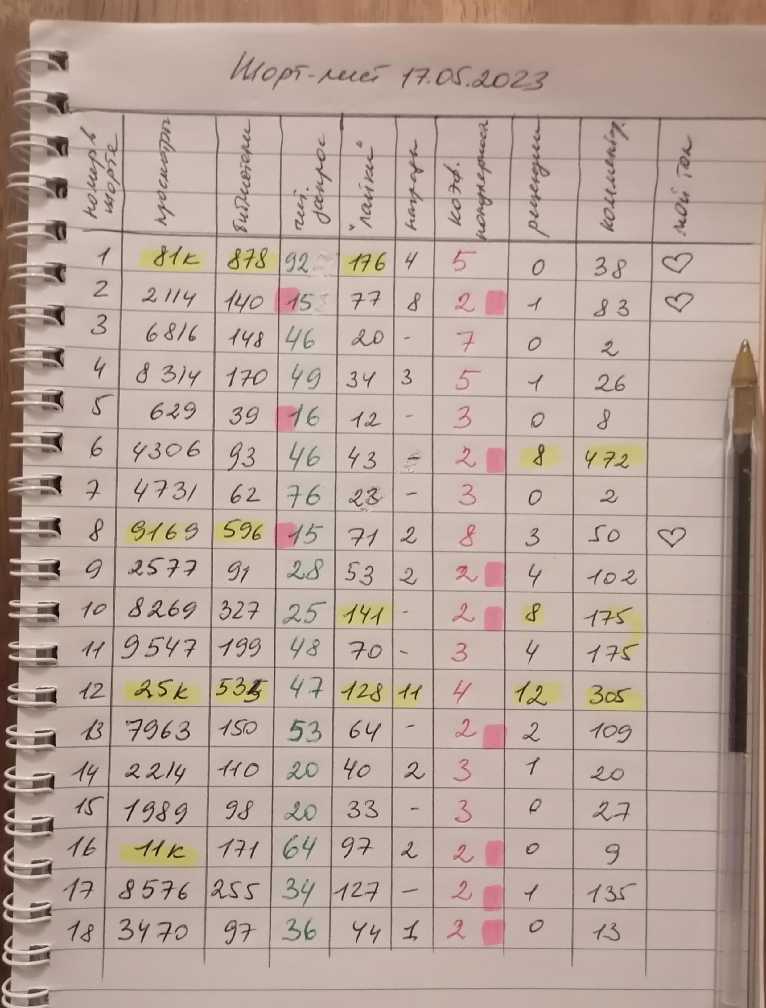 Соответственно, статистика может оказаться важна, но в последнюю очередь. А потому стало любопытно и такие показатели сравнить: просмотры, библиотеки, отзывы... Таблицу сделала от руки, так проще оказалось: