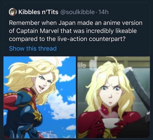Также публика сходится во мнении, что аниме спасло образ Капитана Марвел, поскольку японская версия обаятельна, крута и на голову выше как живой, так и рисованной американской. Тоже не могу спорить...